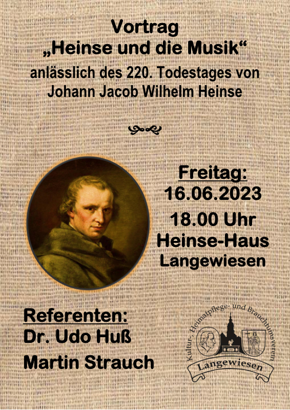 Vortrag zum Thema "Heinse und die Musik" anlässlich des 220. Todestages von Johann Jacob Wilhelm Heinse